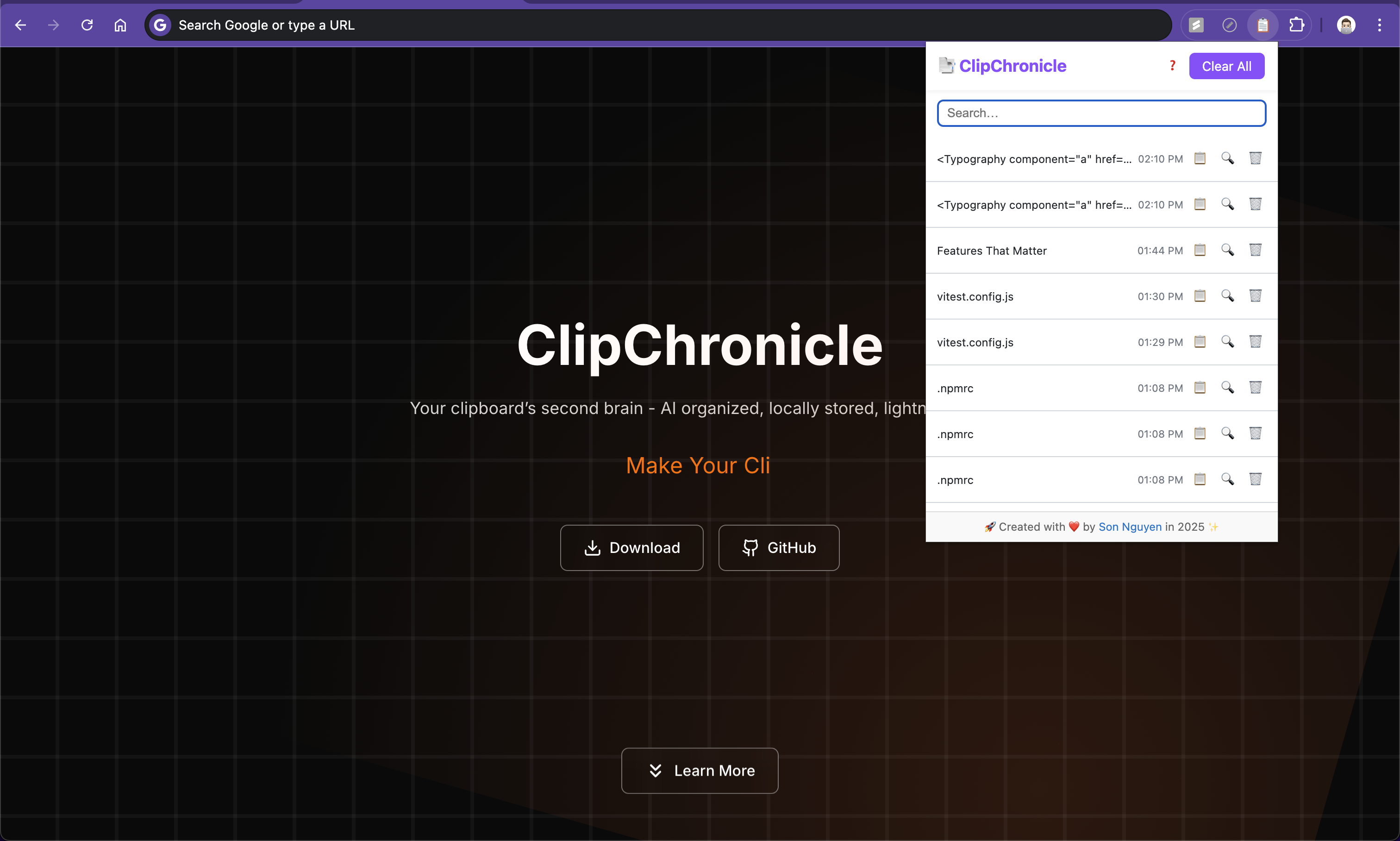 ClipChronicle lives on GitHub under the MIT license. We welcome pull requests, feature ideas, and issue reports - star the repo to support open development.